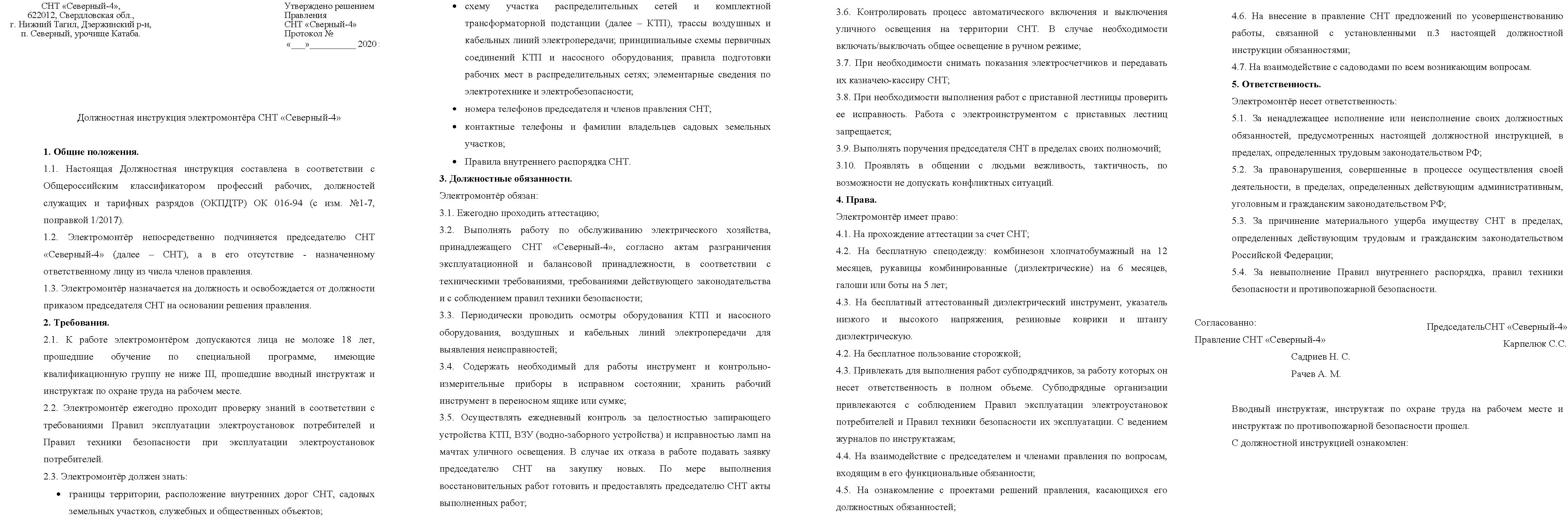 Длжностная инстукция электромонтёра СТСН "Северный-4"
