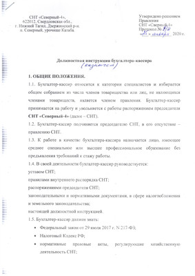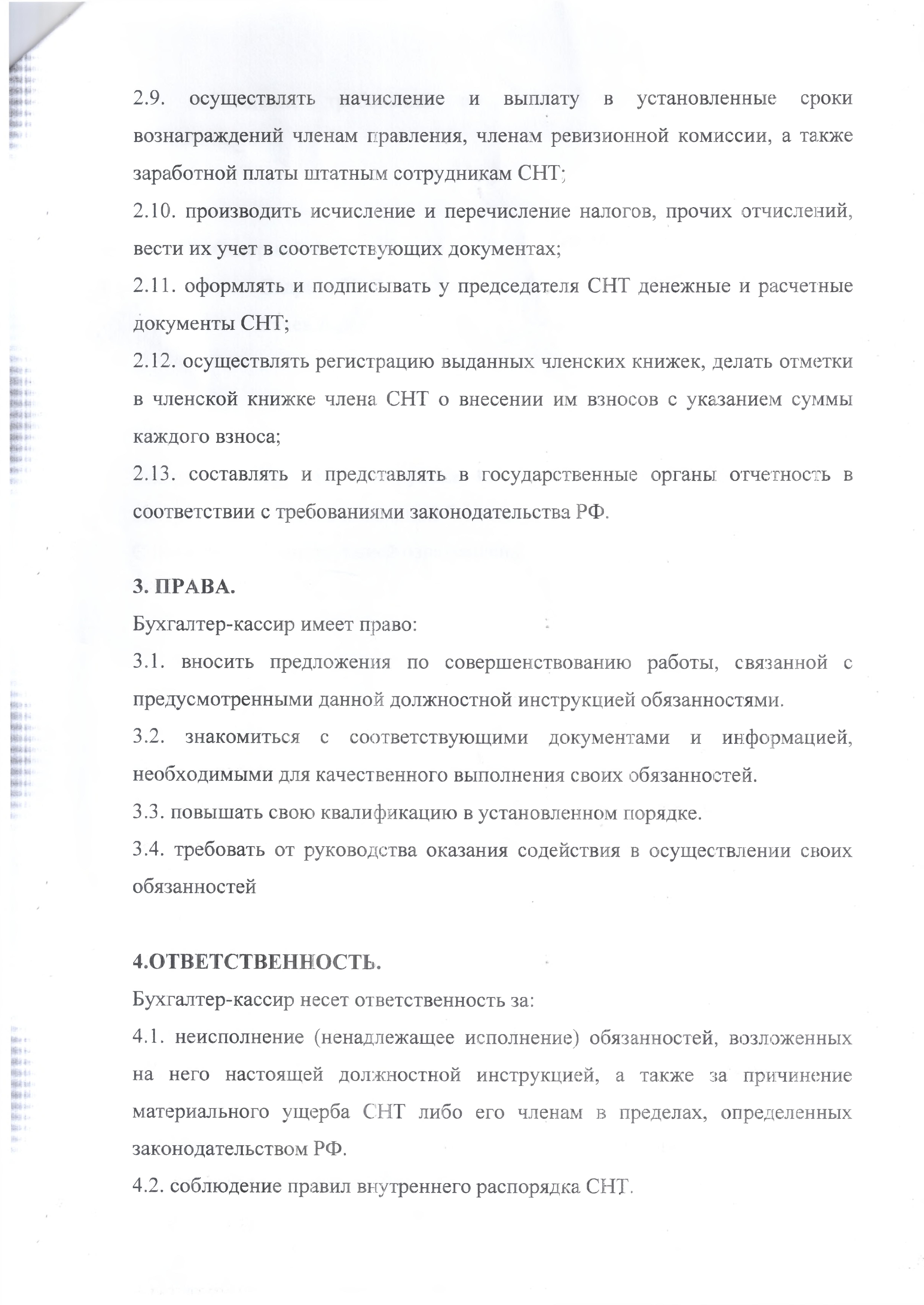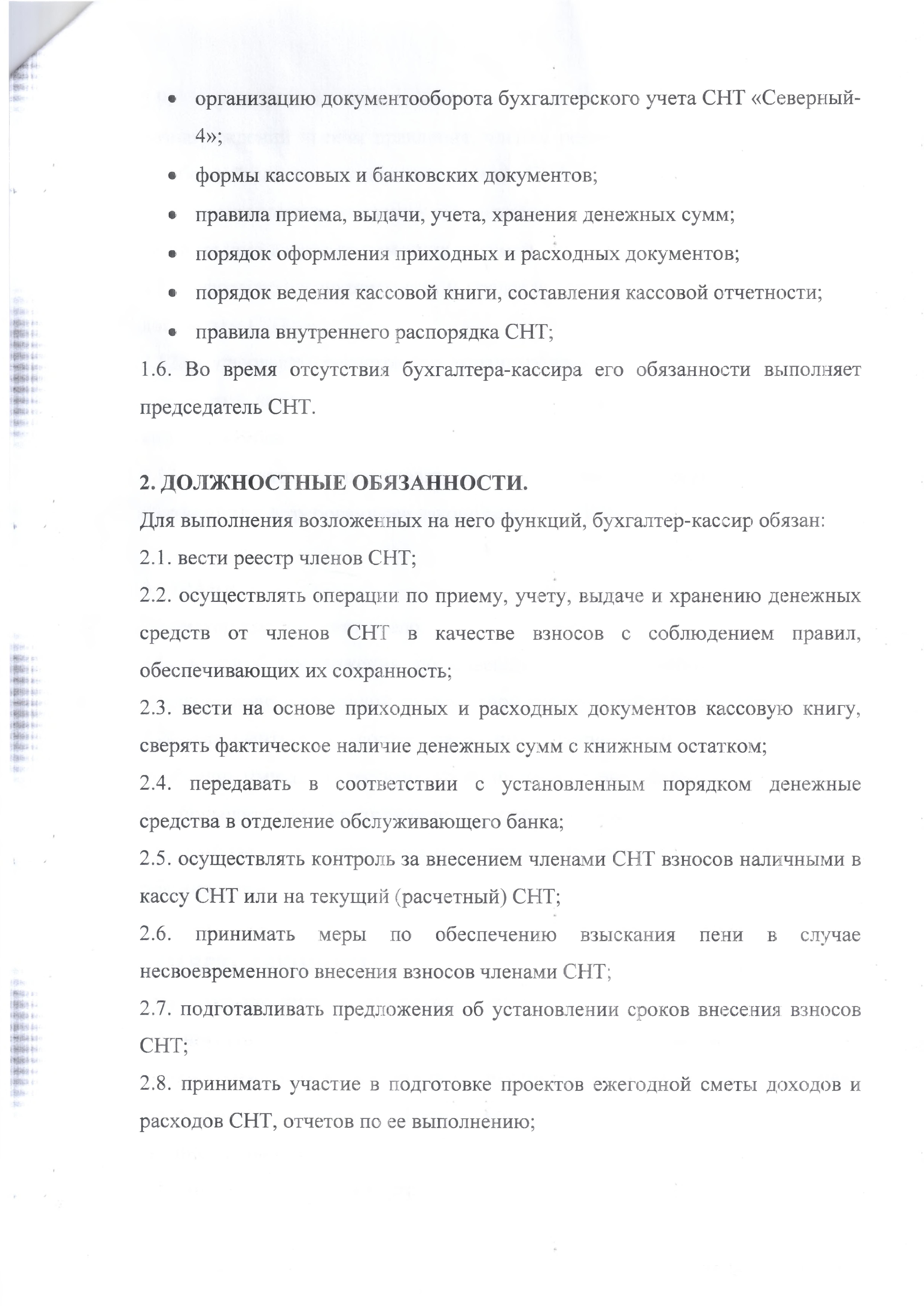 Длжностная инстукция бухгалтера-кассира СТСН "Северный-4"